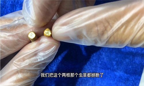 四、我們把這個兩根那個蟲草都掰斷了,有的人說就是網(wǎng)上說很多是人工的沒有消化腺,